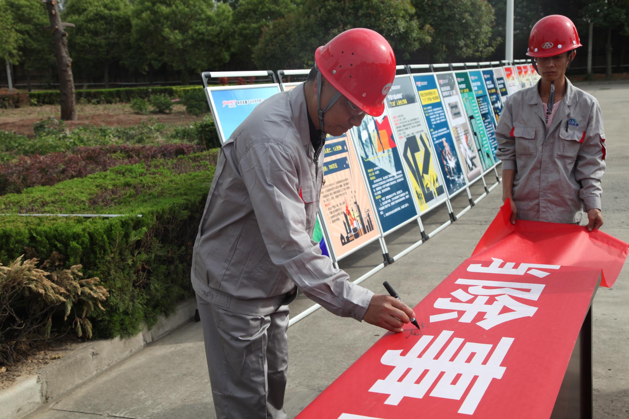 隨后,在安環(huán)部工作人員的帶領(lǐng)下,全體人員進(jìn)行安全承諾宣誓。最后,全體人員進(jìn)行了安全承諾簽字,并觀看了安全生產(chǎn)事故案例展板。