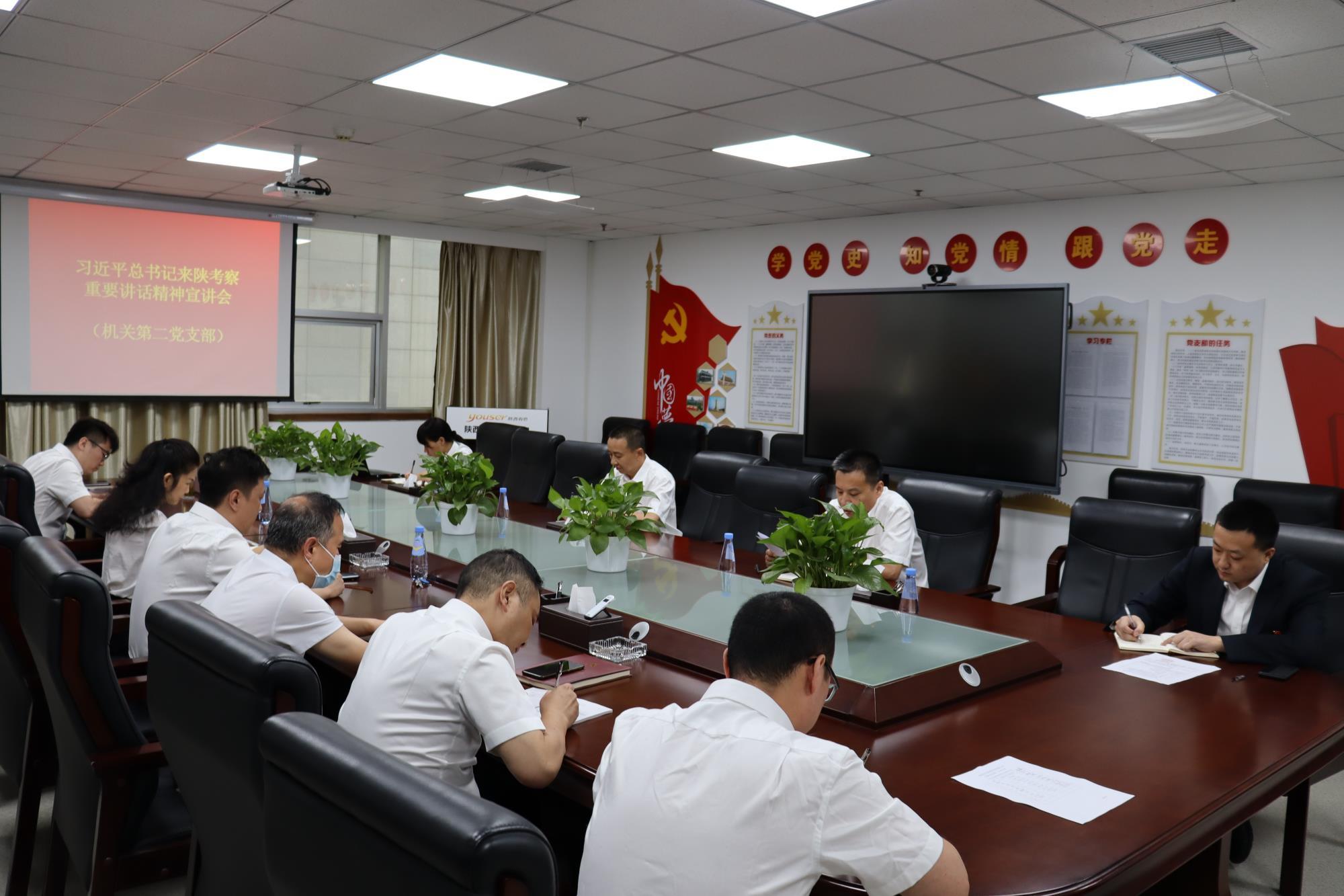 6月4日黨委書記葛琦在公司機關第一黨支部、6月9日黨委副書記苗謙在公司機關第二黨支部分別開展習近平總書記來陜考察重要講話精神宣講,共有22名黨員同志參加宣講會,共同學習了習近平總書記的來陜考察重要講話精神。大家一致認為,習近平總書記在新冠肺炎疫情防控的重要階段,決勝脫貧攻堅的關鍵時刻,再次來陜西考察指導工作,是對陜西的關愛和重視,我們要切實增強“四個意識”,堅定“四個自信”,做到“兩個維護”,從總書記來陜考察重要講話重要指示中汲取力量、增強干勁,以勇立潮頭、爭當時代弄潮兒的志向和氣魄,為譜寫新時代陜西追趕超越新篇章貢獻力量。