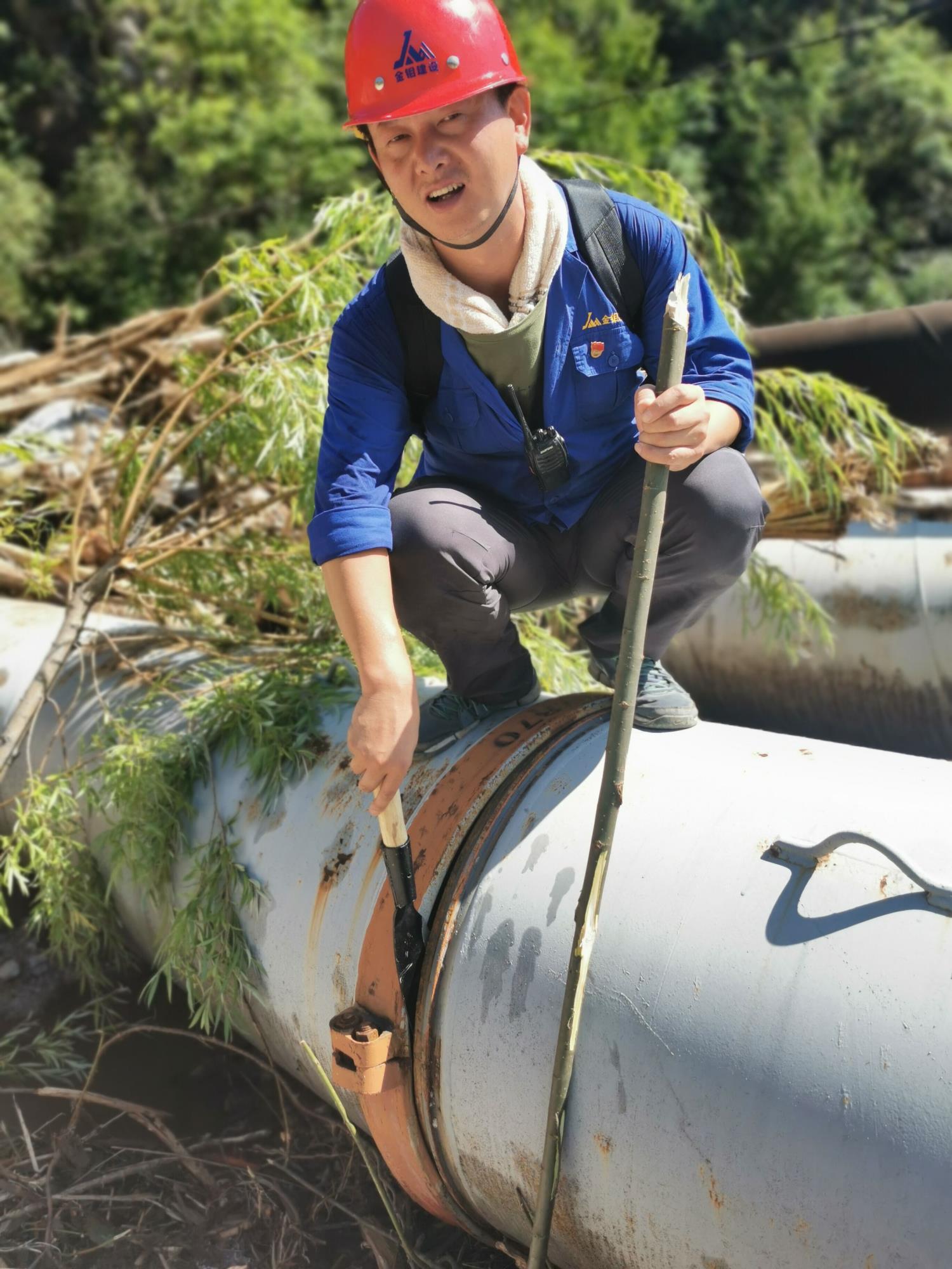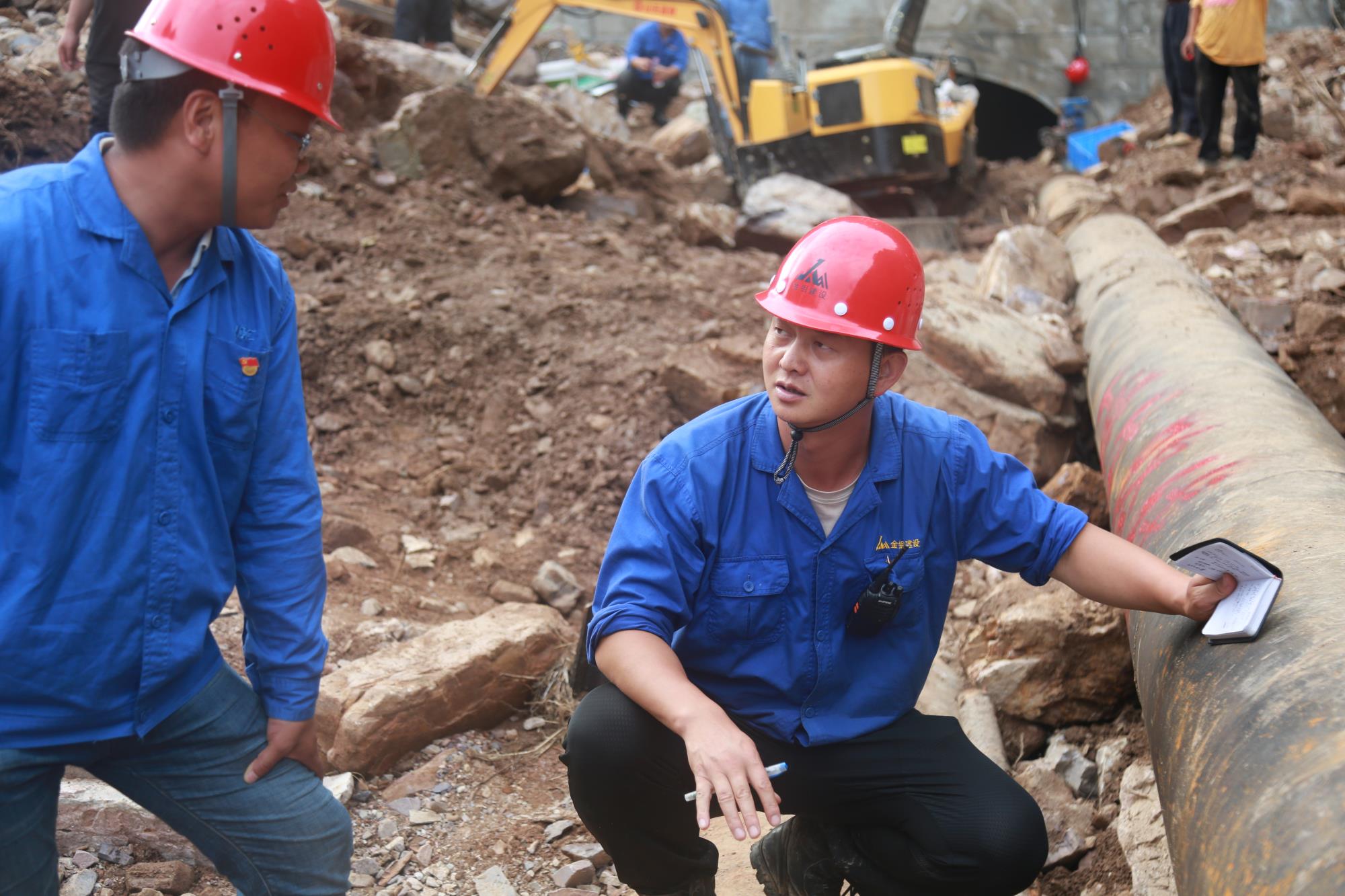 在栗西尾礦庫上壩道路打通后,他來不及休息,又接到王家坪尾礦輸送管線疏通的重任。他再次一馬當(dāng)先,帶領(lǐng)搶險人員爬山涉水、翻山越嶺,徒步實(shí)地勘察管線受損情況,參與研究制定搶修作業(yè)方案。他們背著礦泉水、方便面,手腳并用爬過激流當(dāng)?shù)赖臏o家溝路段,腳踩深達(dá)80多厘米的洞內(nèi)淤泥積水,從被亂石掩埋,高度只有30多厘米高的洞口夾縫中艱難爬出。他每天在泥濘中行走20余公里,從不退縮,一往無前。