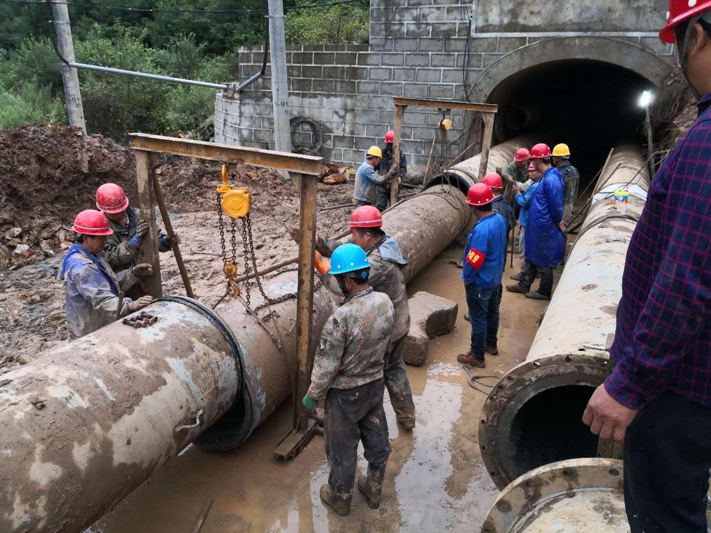 面對(duì)單管重4.5噸的8根管道,要把他們?nèi)繉?duì)接成功。如何吊裝?如何找對(duì)接角度?如何穩(wěn)固支撐?他一一向現(xiàn)場(chǎng)作業(yè)人員進(jìn)行了詳細(xì)的指導(dǎo)?!跋蜃筮厑?lái)一點(diǎn),再來(lái)一點(diǎn),再高一點(diǎn)……”一天下來(lái),嗓子早已沙啞,說(shuō)不出話(huà)來(lái),嘴唇干裂的炸開(kāi)一道道血口子,拖著疲憊至極的身體,依然堅(jiān)守在王家坪四號(hào)洞口。經(jīng)過(guò)現(xiàn)場(chǎng)作業(yè)人員的共同努力,終于在 8月19日20時(shí),王家坪尾礦兩條輸送管道對(duì)接成功。這是一個(gè)重要的時(shí)刻,它標(biāo)志著自8·6特大汛情尾礦庫(kù)輸送管線(xiàn)損毀后,王家坪尾礦庫(kù)具備輸送條件。他除了現(xiàn)場(chǎng)指揮安裝,還負(fù)責(zé)監(jiān)督現(xiàn)場(chǎng)操作安全,確認(rèn)管道的整體恢復(fù)質(zhì)量。