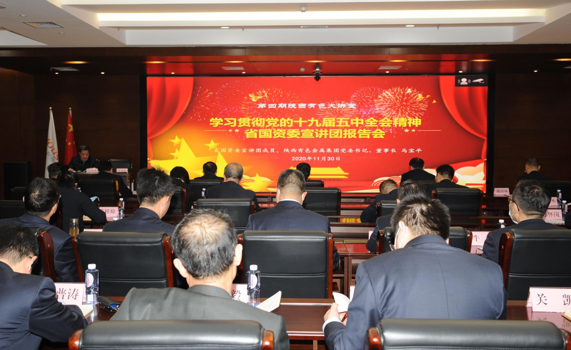 11月30日,學(xué)習(xí)貫徹黨的十九屆五中全會(huì)精神省國(guó)資委宣講團(tuán)報(bào)告會(huì)在陜西有色金屬集團(tuán)舉行。省國(guó)資委宣講團(tuán)成員、陜西有色金屬集團(tuán)黨委書記、董事長(zhǎng)馬寶平作宣講報(bào)告,黨委副書記、董事王小慶主持。