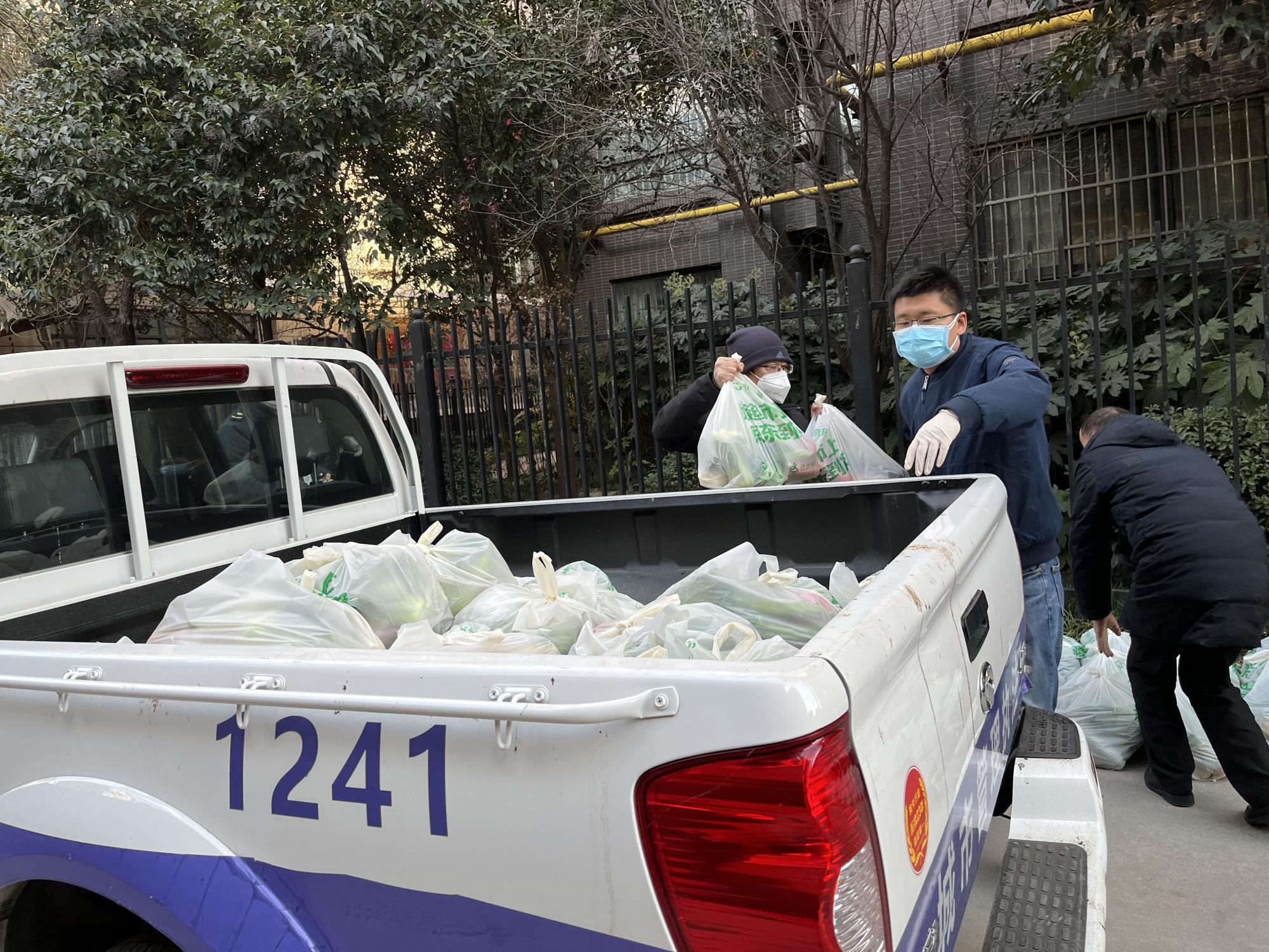 “菜什么時(shí)候能送到,家里都快斷炊了?!薄澳軒臀壹疑狱c(diǎn)東西嗎?家里沒(méi)米了!”“我家隔壁沒(méi)住人,不用送菜了?!薄易”謪^(qū)新旅城的地礦集團(tuán)東新科貿(mào)志愿者劉剛、工程公司志愿者朱斌面對(duì)小區(qū)居民每天的“點(diǎn)單”忙的不可開(kāi)交,和社區(qū)工作人員快速登記,逐戶(hù)送菜到住戶(hù)家門(mén)口。