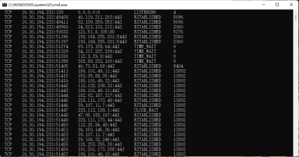 通過netstat命令可以查看操作系統(tǒng)網(wǎng)絡(luò)狀態(tài)信息。如Windows主機可使用netstat -ano命令查看主機網(wǎng)絡(luò)連接狀態(tài)和對應(yīng)進程,判斷是否存在異常的網(wǎng)絡(luò)連接。