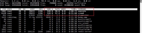 Linux主機根據(jù)程序CPU資源占用率排序,進一步執(zhí)行枚舉進程命令行:ps -aux。