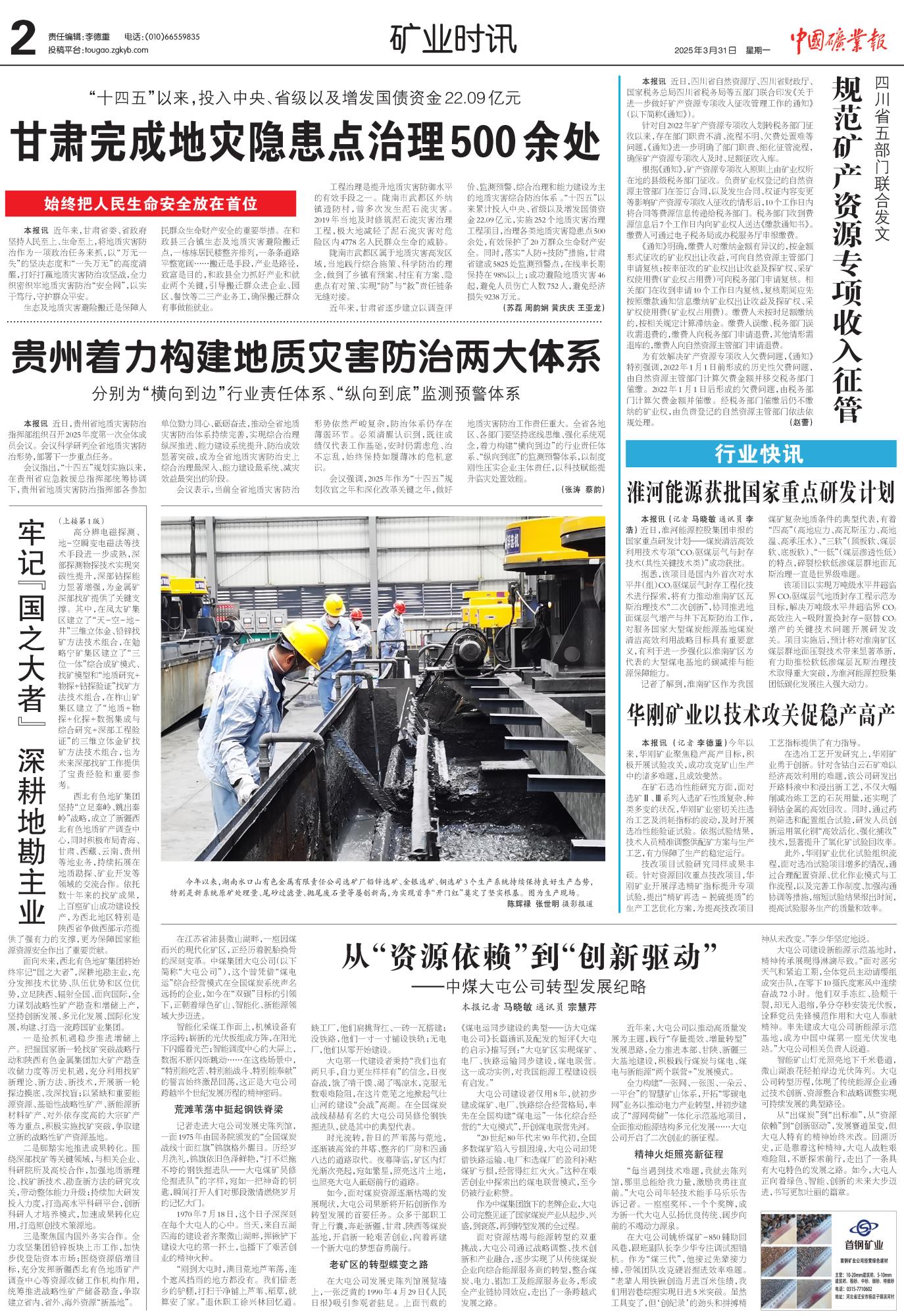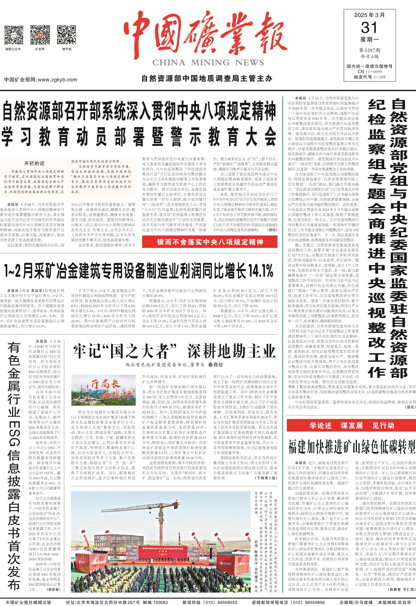 近期,《中國(guó)礦業(yè)報(bào)》開設(shè)了“廳局長(zhǎng)話找礦”欄目。該欄目邀請(qǐng)各?。▍^(qū)、市)自然資源主管部門、地勘單位負(fù)責(zé)人撰寫署名文章,深入交流央地企合作新機(jī)制下“十四五”找礦成績(jī)和經(jīng)驗(yàn),并謀劃展望“十五五”找礦工作。2025年3月31日,《中國(guó)礦業(yè)報(bào)》頭版刊出了該欄目的第21篇文章,即地礦集團(tuán)、黃金集團(tuán)黨委書記、董事長(zhǎng)秦西社的署名文章。全文如下: