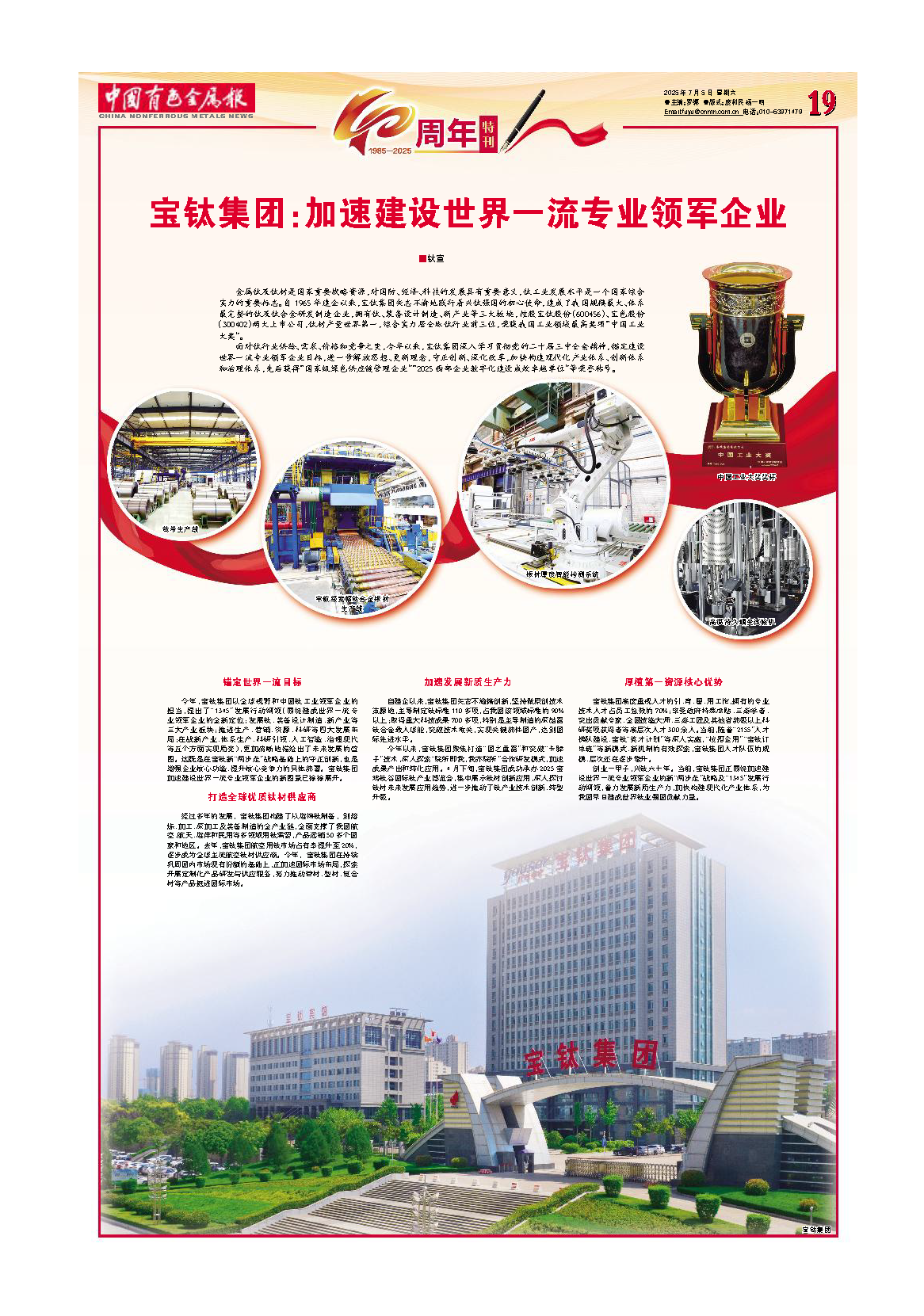 面對鈦行業(yè)供給、需求、價格和競爭之變,今年以來,寶鈦集團深入學習貫徹黨的二十屆三中全會精神,錨定建設世界一流專業(yè)領軍企業(yè)目標,進一步解放思想、更新理念,守正創(chuàng)新、深化改革,加快構建現(xiàn)代化產(chǎn)業(yè)體系、創(chuàng)新體系和治理體系,先后獲得“國家級綠色供應鏈管理企業(yè)”“2025西部企業(yè)數(shù)字化建設成效卓越單位”等榮譽稱號。