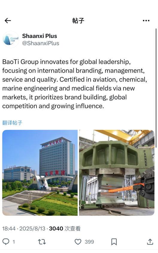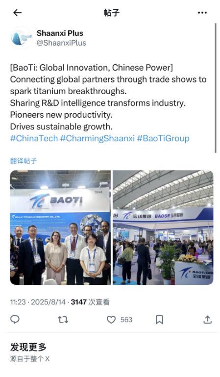 從行業(yè)展會到客戶走訪,寶鈦集團始終以開放姿態(tài)鏈接全球創(chuàng)新資源。其與海內(nèi)外同行深度交流鈦材創(chuàng)新應用,共探未來趨勢,將分散的技術(shù)火花聚成燎原之勢。通過分享最新研發(fā)成果與市場洞察,寶鈦集團不僅加速自身技術(shù)突破,更推動全球鈦產(chǎn)業(yè)轉(zhuǎn)型升級。借助協(xié)同創(chuàng)新,寶鈦集團整合全球智慧,在新質(zhì)生產(chǎn)力培育中走在前列。創(chuàng)新無邊界,寶鈦集團正以全球視野,為鈦產(chǎn)業(yè)的可持續(xù)發(fā)展注入源源不斷的中國智慧。