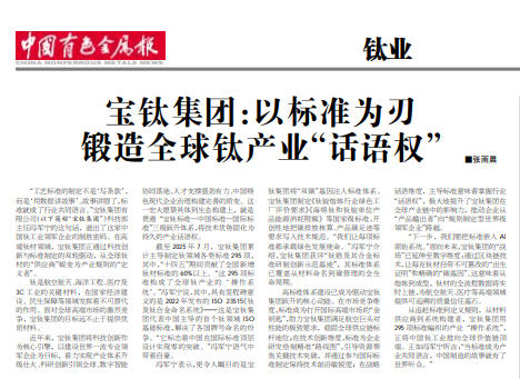 從追趕標準到定義規(guī)則,從材料供應商到系統(tǒng)構建者,寶鈦集團用295項標準編織的產(chǎn)業(yè)“操作系統(tǒng)”,正將中國鈦工業(yè)推向全球價值鏈頂端。正如馮軍寧所言:“當標準成為產(chǎn)業(yè)共同語言,中國制造的故事就有了世界聽眾?!?