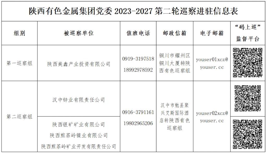 陜西有色金屬集團(tuán)黨委2023-2027第二輪巡察近日完成進(jìn)駐,根據(jù)集團(tuán)黨委統(tǒng)一部署,本輪巡察共派出2個巡察組,分別對陜西美鑫黨委、漢中鋅業(yè)黨委、陜西銀礦黨委、煎茶嶺鎳業(yè)黨委、煎茶嶺礦業(yè)黨支部開展常規(guī)巡察。