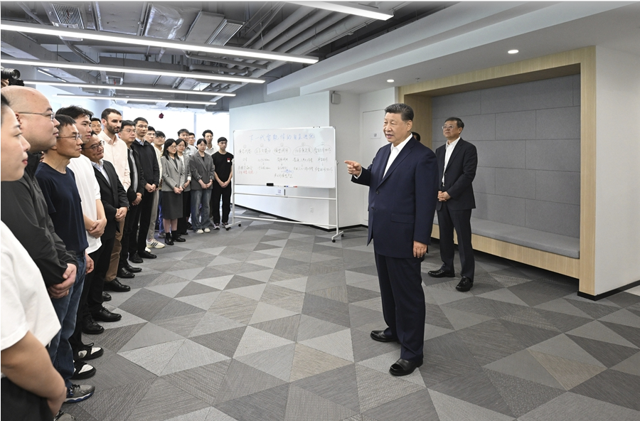 4月29日,中共中央總書記、國家主席、中央軍委主席習近平在上??疾?。這是習近平在位于徐匯區(qū)的上海“模速空間”大模型創(chuàng)新生態(tài)社區(qū),同正在參加“下一代智能體的自主進化”主題沙龍的青年創(chuàng)新人才親切交流。新華社記者 謝環(huán)馳 攝