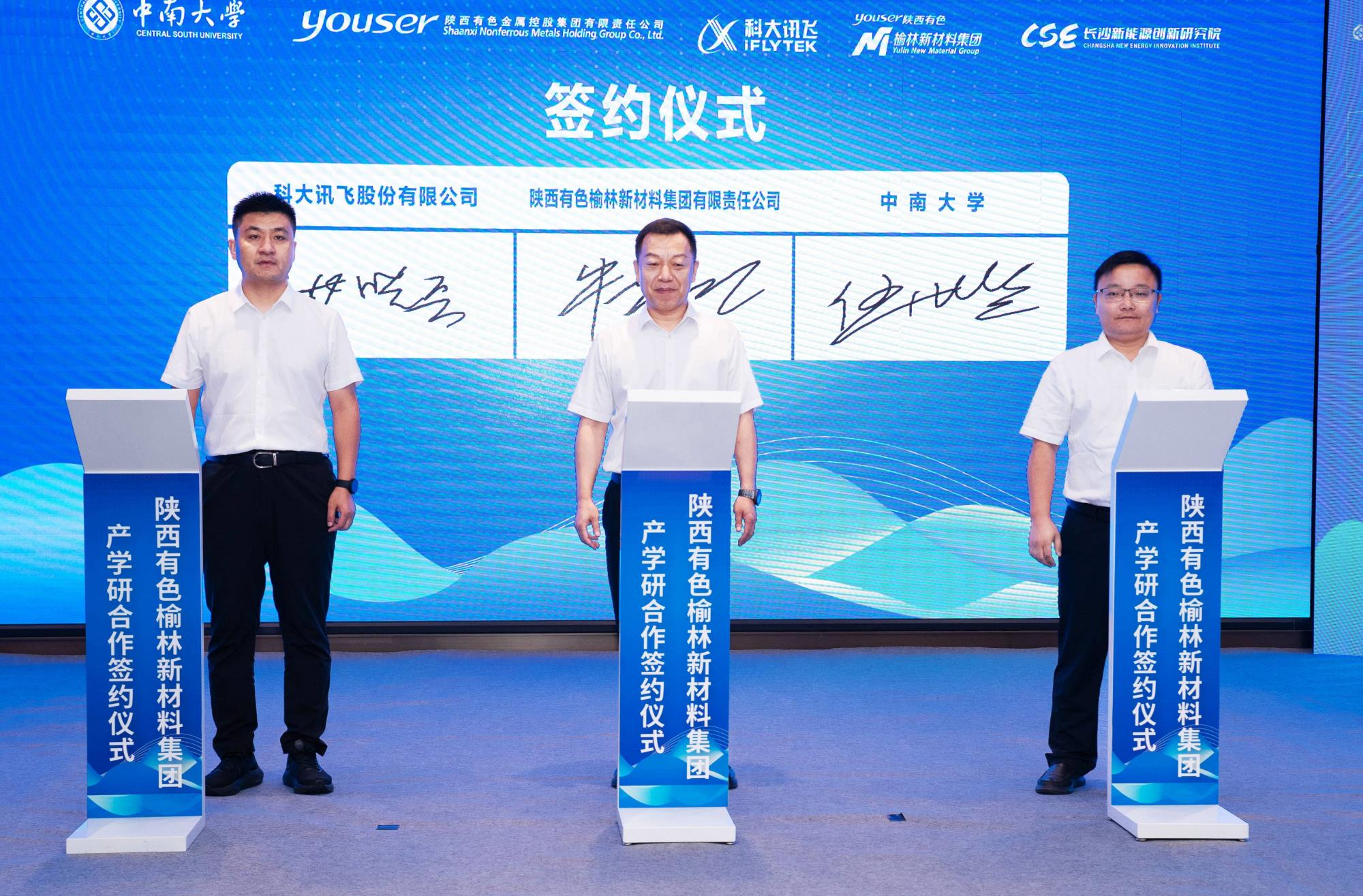 榆林新材料集團與中南大學(xué)能源科學(xué)與工程學(xué)院、科大訊飛簽訂校企產(chǎn)學(xué)研三方合作協(xié)議。