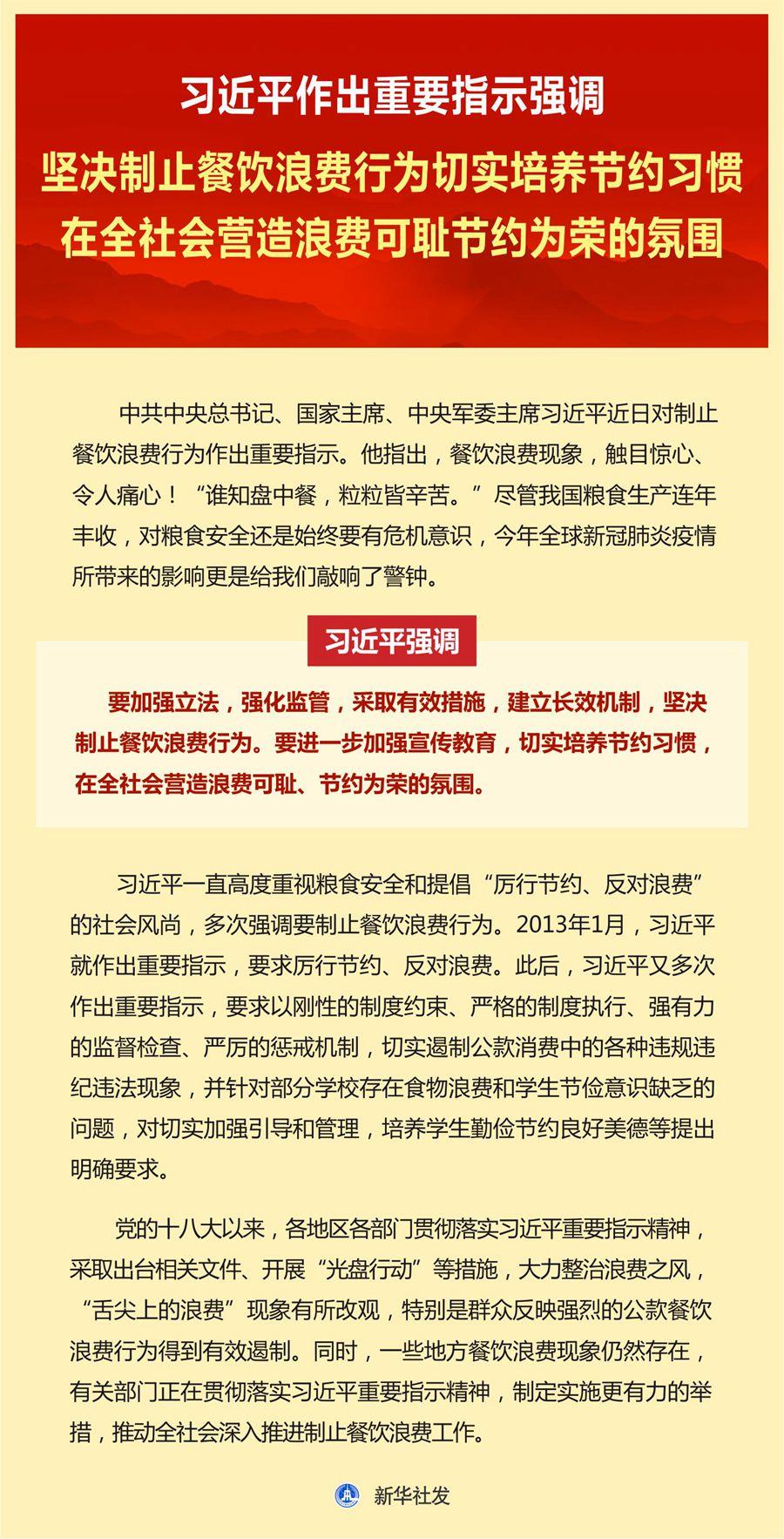【學(xué)習(xí)資料】習(xí)近平作出重要指示強調(diào)堅決制止餐飲浪費行為切實培養(yǎng)節(jié)約習(xí)慣在全社會營造浪費可恥節(jié)約為榮的氛圍