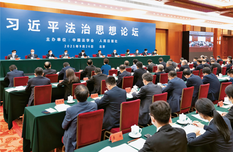 2021年9月26日,由中國法學(xué)會和人民日報社聯(lián)合主辦的習(xí)近平法治思想論壇在京舉行。論壇以“堅定不移走中國特色社會主義法治道路,為全面建成社會主義現(xiàn)代化強(qiáng)國而努力奮斗”為主題,旨在推動社會各界特別是法學(xué)法律界認(rèn)真學(xué)習(xí)、深入研究、扎實(shí)宣傳習(xí)近平法治思想,自覺用習(xí)近平法治思想武裝頭腦、指導(dǎo)實(shí)踐、推動工作,譜寫新時代全面依法治國新篇章?! 睹裰髋c法制》社記者 戎珊/攝