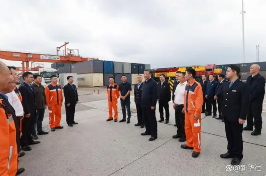 隨后,習近平來到重慶鐵路集裝箱中心站,聽取貨物集散、運輸路徑、運營成本和效益等介紹,同貨車司機、列車司機、裝卸工人、場站管理人員等親切交流,詢問他們的工作強度、勞動保護、節(jié)假日休息和收入情況。習近平說,大家在物流一線,也是在對外開放一線,通過你們的辛勤勞動,很多商品跨越山海、走向世界,你們的工作很有意義。推動西部大開放、促進西部大開發(fā),物流很重要,大家要繼續(xù)努力,不斷創(chuàng)造新的業(yè)績,作出新的貢獻。