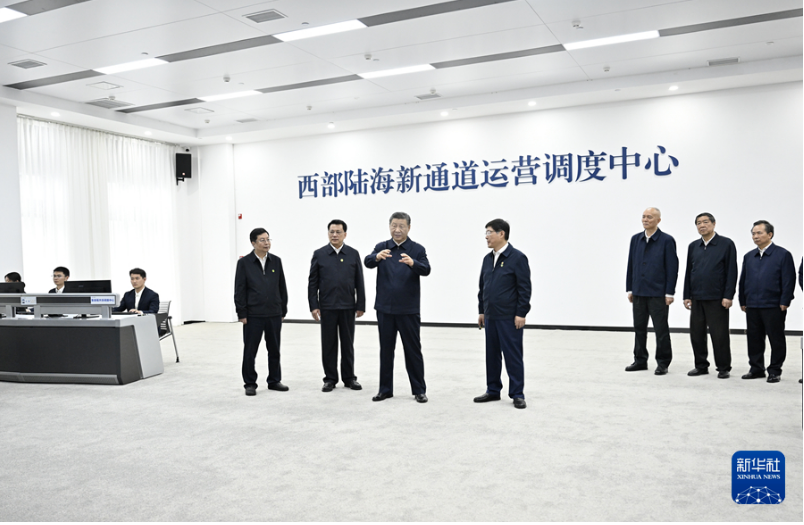 4月22日至24日,中共中央總書記、國家主席、中央軍委主席習近平在重慶考察。這是22日下午,習近平在重慶國際物流樞紐園區(qū)西部陸海新通道重慶無水港運營調度中心考察。新華社記者 岳月偉 攝