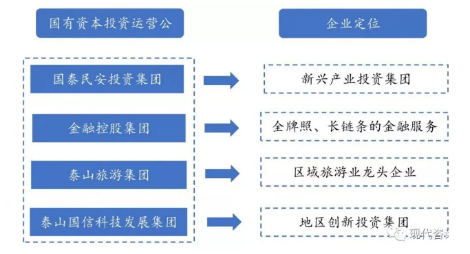地市級層面,例如泰安市在原產(chǎn)業(yè)集團(tuán)的基礎(chǔ)上改建四家市屬集投資、運(yùn)營于一體的國有資本投資運(yùn)營公司——國泰民安投資集團(tuán)、金融控股集團(tuán)、泰山旅游集團(tuán)、泰山國信科技發(fā)展集團(tuán)。