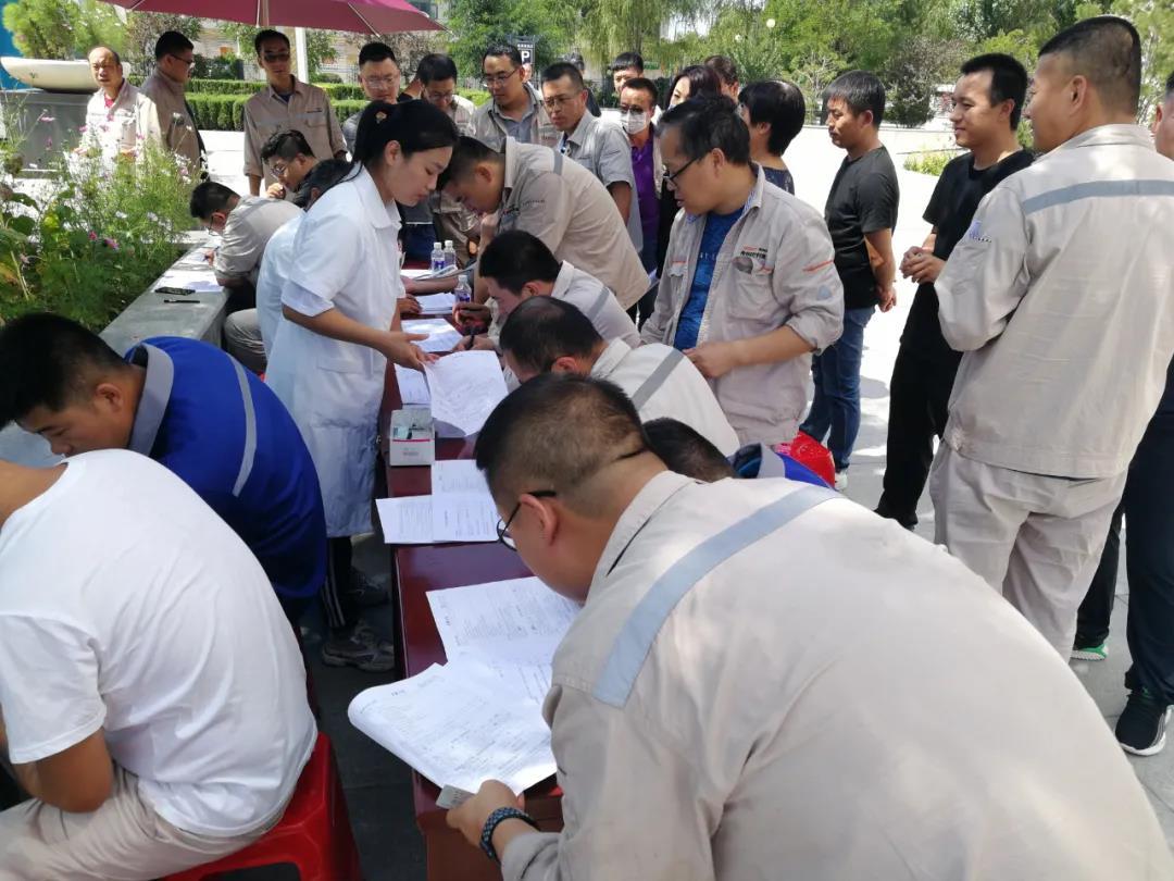 活動當天雖然烈日炎炎,驕陽似火,卻阻擋不住榆林新材料公司干部職工傳遞愛心的熱情?;顒蝇F(xiàn)場,在榆林市中心血站醫(yī)護人員的指導下,在工作人員的有序組織下,參與獻血的志愿者們認真填寫登記表、測血壓、抽血化驗,經(jīng)驗血合格后再依次進行獻血。獻血隊伍中既有公司領導,又有普通職工;既有第一次參加獻血的青年員工,也有工作多年的老同志,他們大多數(shù)都是黨員職工,用同樣的方式表達著自己的愛心,奉獻著自己的真情。