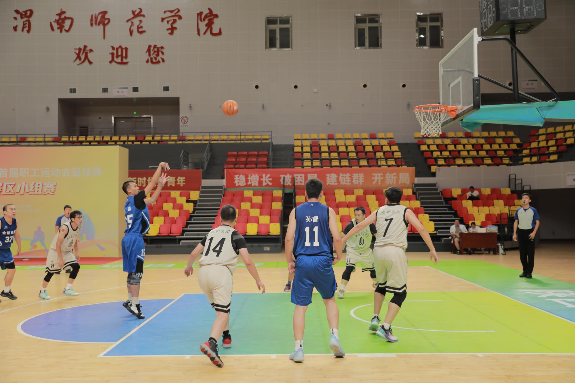 本次小組賽共持續(xù)兩天,分別在渭南、寶雞、榆林3個(gè)地區(qū)舉辦。金鉬集團(tuán)、陜西銀礦、西安勘察院、陜西鋅業(yè)、地礦集團(tuán)5支權(quán)屬企業(yè)代表隊(duì),58 名運(yùn)動(dòng)員在渭南賽區(qū)參加小組賽。經(jīng)過10場比賽的激烈角逐,將有2支代表隊(duì)晉級并參加9月上旬在西安舉辦的陜西有色金屬集團(tuán)首屆職工健身運(yùn)動(dòng)會(huì)籃球項(xiàng)目決賽。