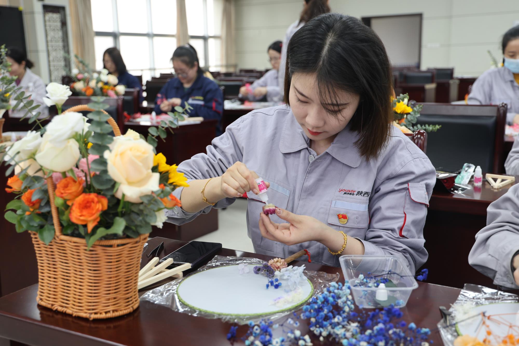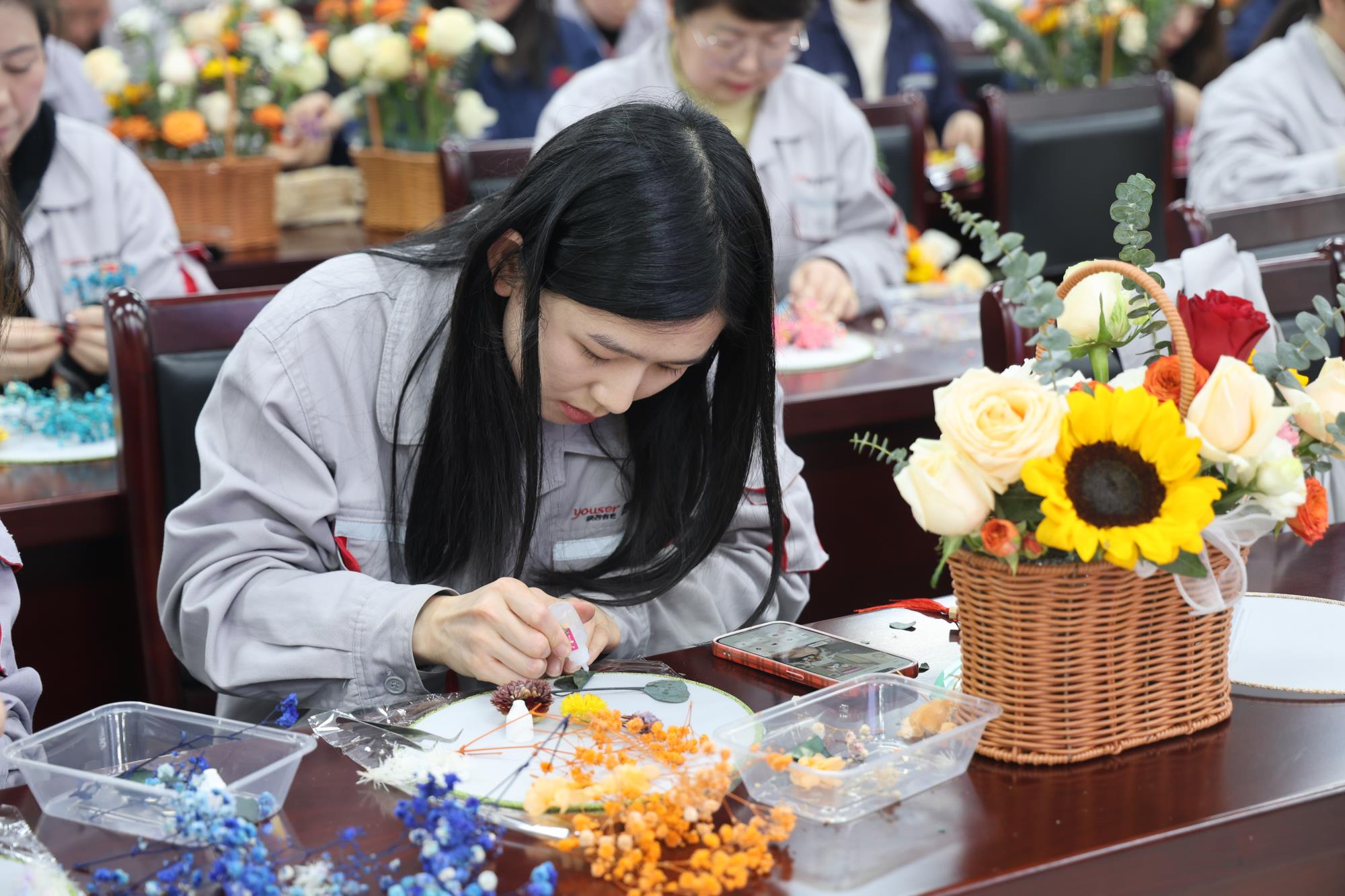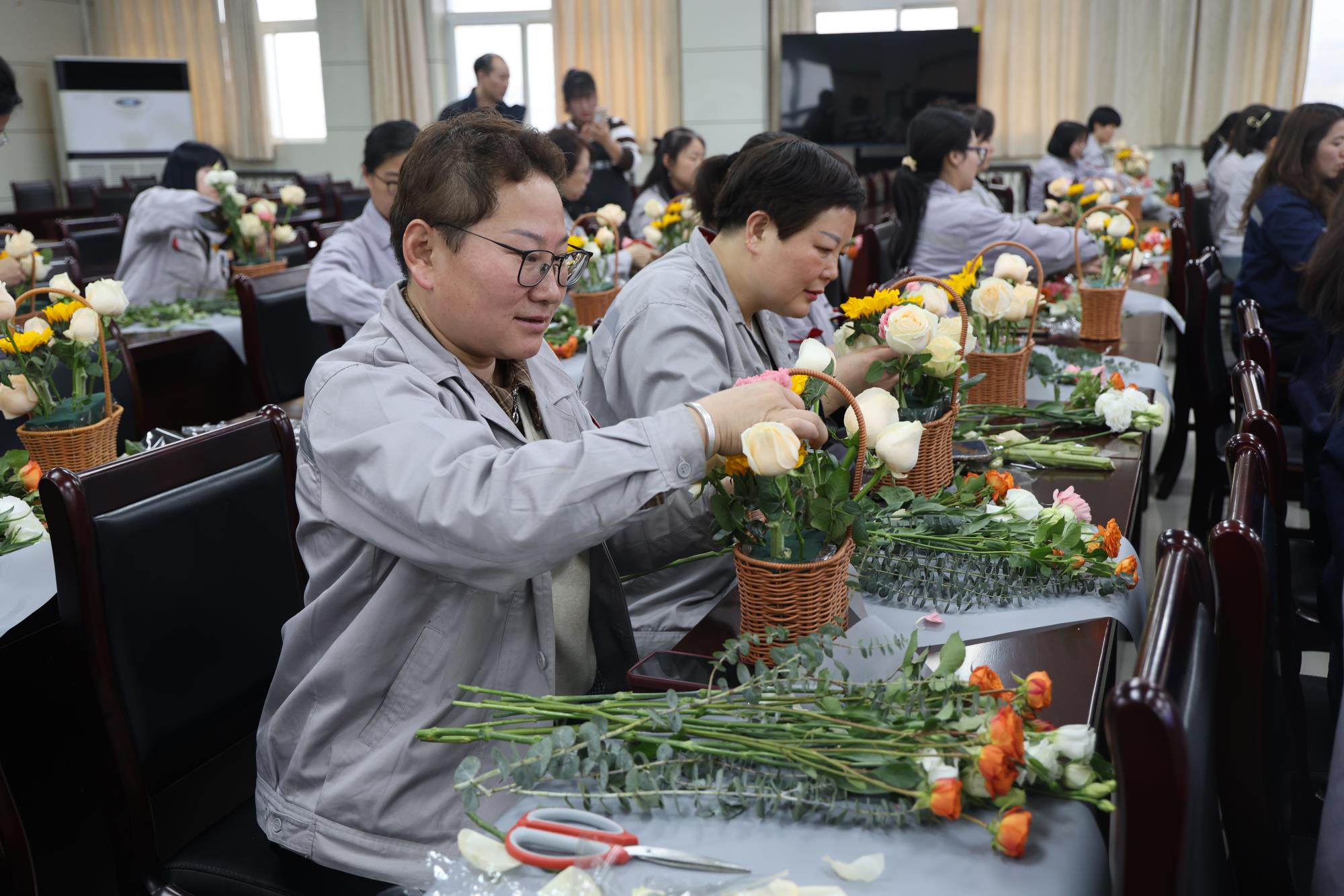 “插花拾趣 悅享生活”插花活動(dòng)邀請(qǐng)專業(yè)花藝師現(xiàn)場(chǎng)為女工們講解了插花的基本技巧和花語(yǔ)寓意,引導(dǎo)大家根據(jù)自己的喜好和審美,將一束束鮮花巧妙地搭配起來(lái)。香檳玫瑰的浪漫、向日葵的朝氣、康乃馨的溫馨……一朵朵鮮花在女工們的巧手下,仿佛被賦予了生命,變成了一件件獨(dú)一無(wú)二的藝術(shù)品。大家一邊插花,一邊交流心得,現(xiàn)場(chǎng)歡聲笑語(yǔ)不斷,氣氛熱烈而融洽。