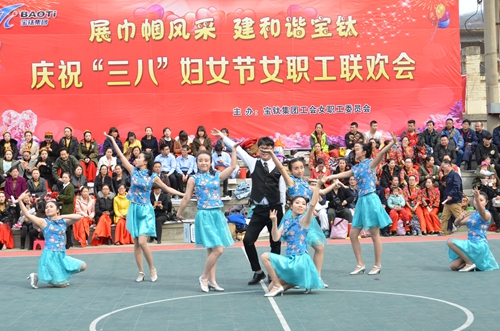 鈦城春意鬧,桃花灼灼開。3月7日下午,寶鈦集團老區(qū)燈光球場上又回蕩起了動人的歌聲、歡快的音樂,來自寶鈦各基層分會的500余名女職工歡聚一堂,以自編自導自演的大聯(lián)歡形式共同慶祝第107個“國際勞動婦女節(jié)”的到來。公司工會主席、紀委書記白林讓,副總經理丁忠杰,公司職工文化體育活動領導小組成員、各分會主席觀看表演。
